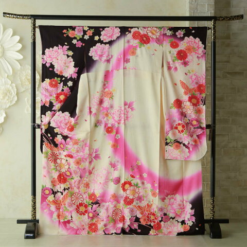 商品情報 サイズ 身長:154cm〜164cmヒップ:86-91まで推奨身丈:164cm裄:66cm袖丈:105cm前巾:23cm後巾:30cm素材 振袖表地:正絹裏地:合成繊維袋帯:正絹胴襦袢:合成繊維注意点 ・本品は当店でレンタル振袖として使っている商品の処分販売となりますので、多少の使用感がございますのでご了承くださいませ。